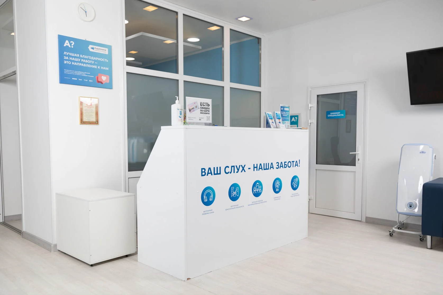Профессиональная съемка для медицинского центра. Создали портреты врачей-сурдологов, показали интерьер и рабочие моменты с клиентами